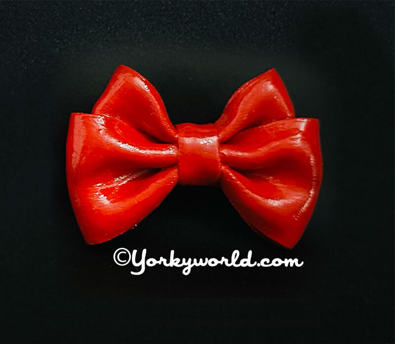 Handmade Bow in red ribbon, artistically treated with a plastic effect.