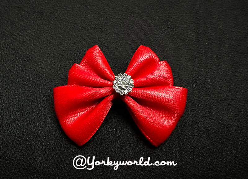 Handmade stiffened & shiny Bow in red SATIN with central strass available in 3 colours:
