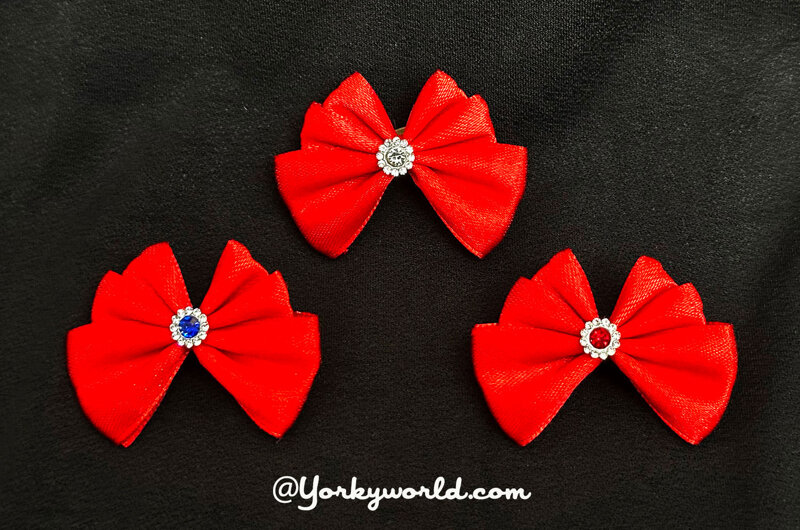 Handmade Soft Bow in red SATIN with central strass available in 3 colours: